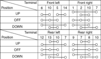 4. Check for continuity between the terminals in each switch position according to the table. If the continuity condition is not normal, replace the switch.