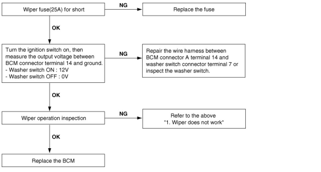 Wiper low and wiper high do not work.
