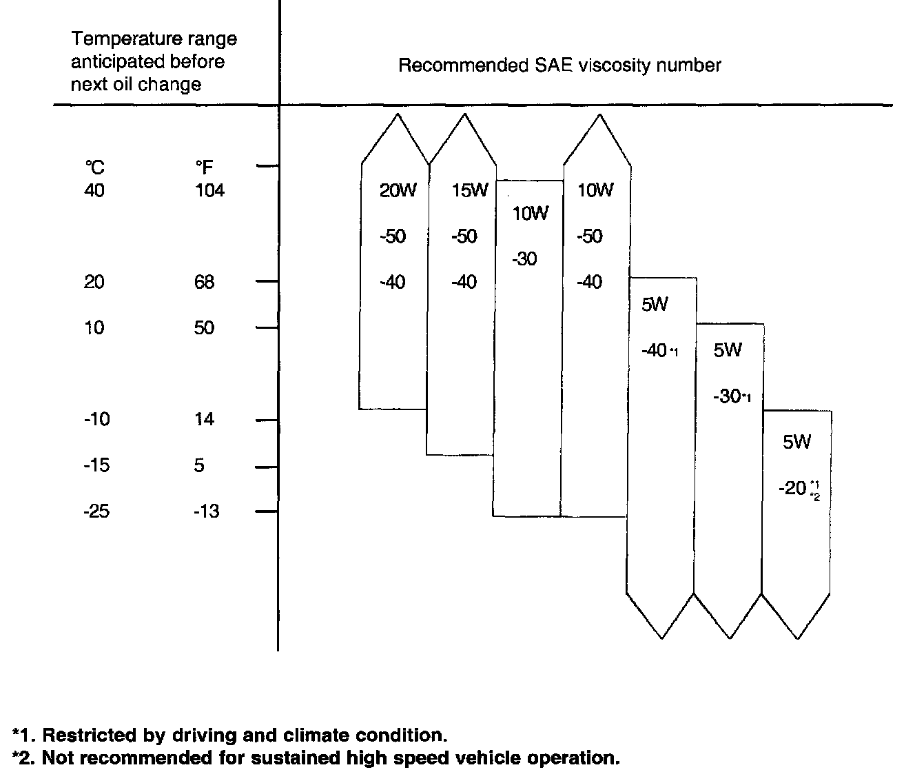 Recommended SAE viscosity grades