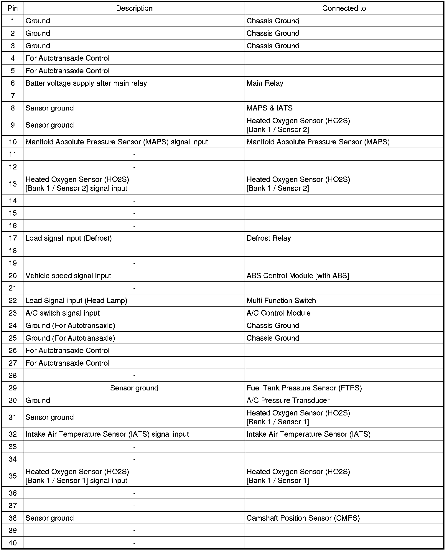 3. PCM TERMINAL IN/OUT SIGNAL (A/T)