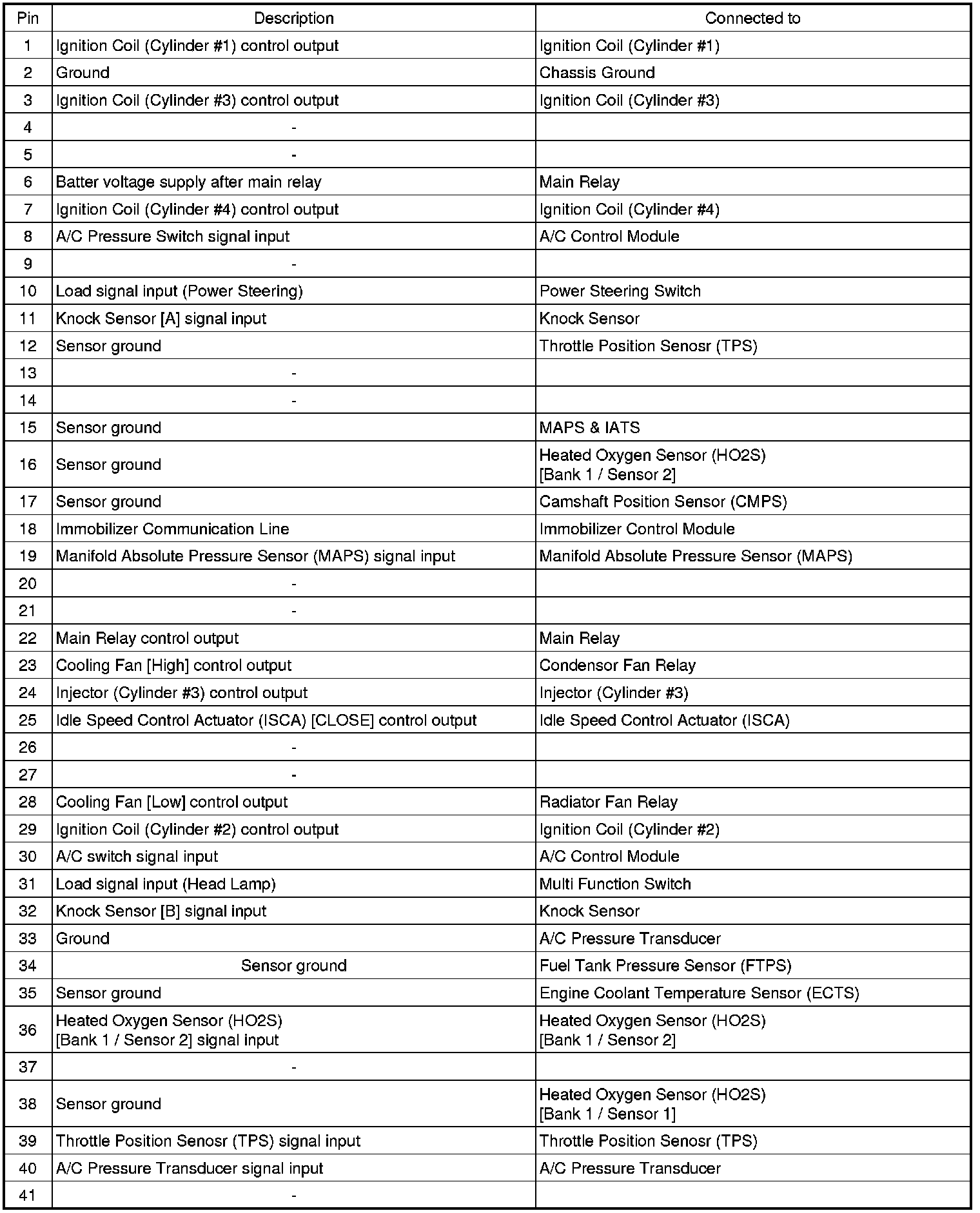 1. ECM HARNESS CONNECTOR (M/T)
