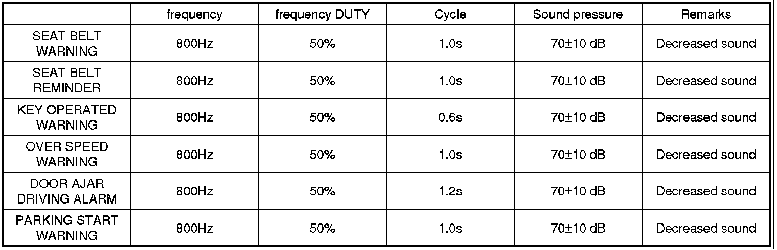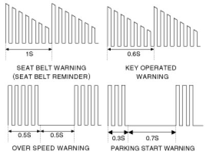 (2) Priority order : SEAT BELT WARNING(SBR) > OVER SPEED WARNING > PARKING START WARNING > DOOR AJAR driving alarm (KEY OPERATED WARNING is engaged when IGN1 SW is OFF)