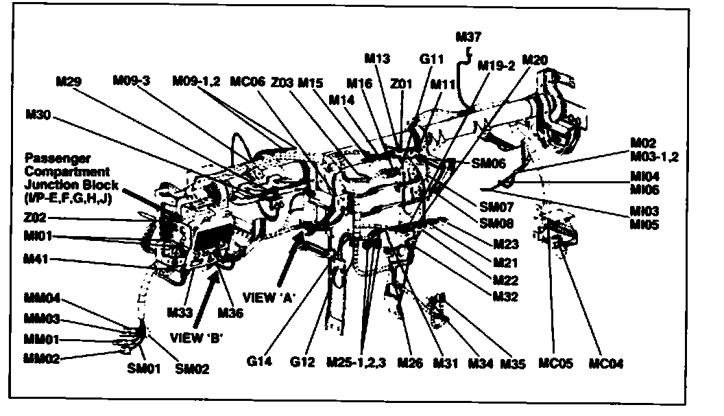 - The pages following the schematic diagrams contain data related to component connector configuration. Each page shows a terminal side view of the connector. Refer to the "Connector View and Numbering Order" section in this document for information related to terminal numbering.
