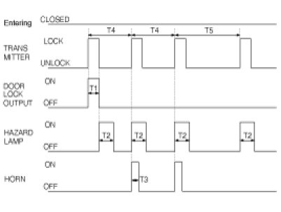 A. In case of removing IGN KEY from CYLINDER and all Door is CLOSE, when receiving TRANSMITTER LOCK signal, start the operation of LOCK output and after T3 from the starting point of operation and then checking the state of LOCK SWITCH, ON the output of HAZARD LAMP for 1s one time.