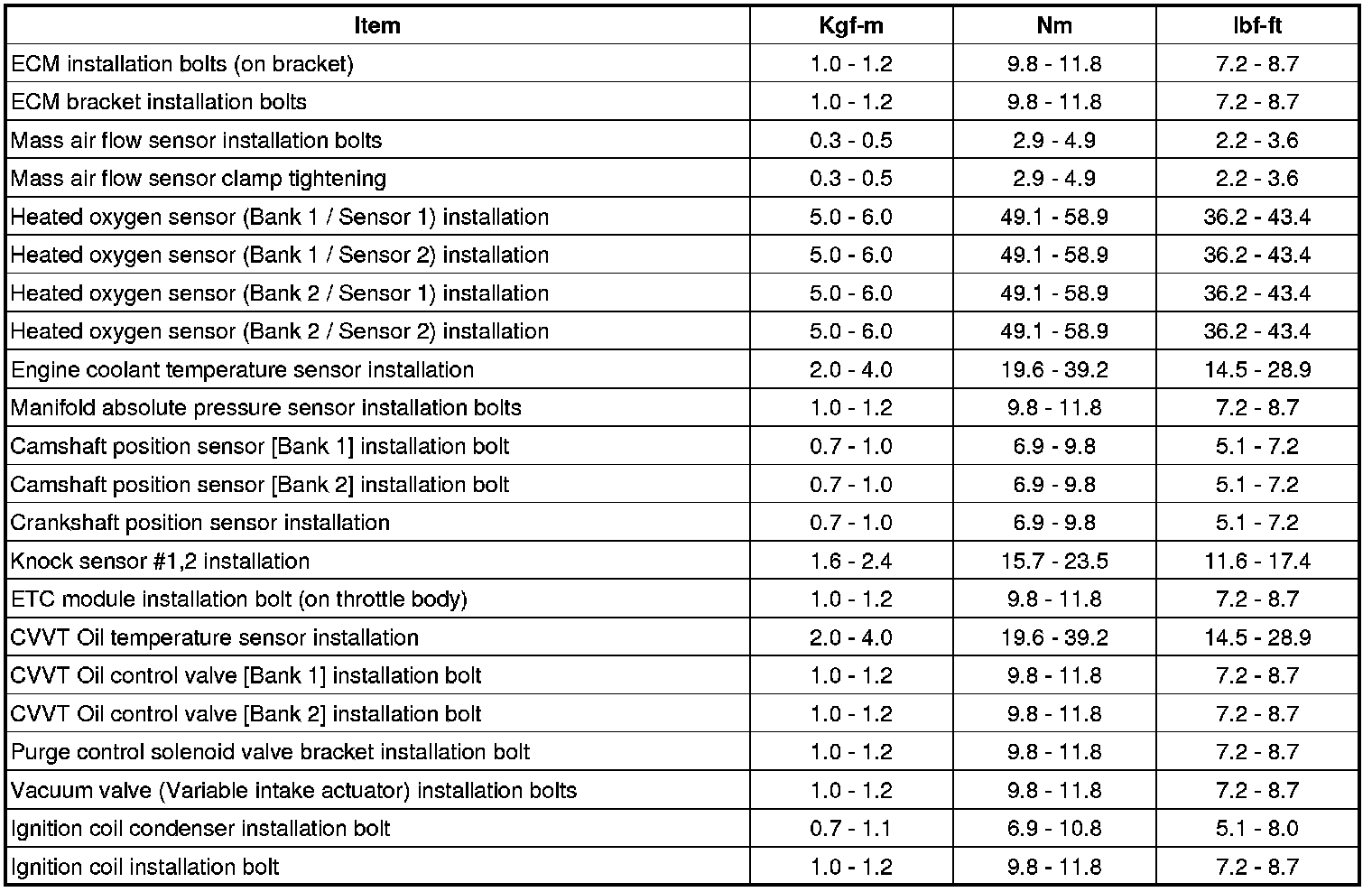 TIGHTENING TORQUES