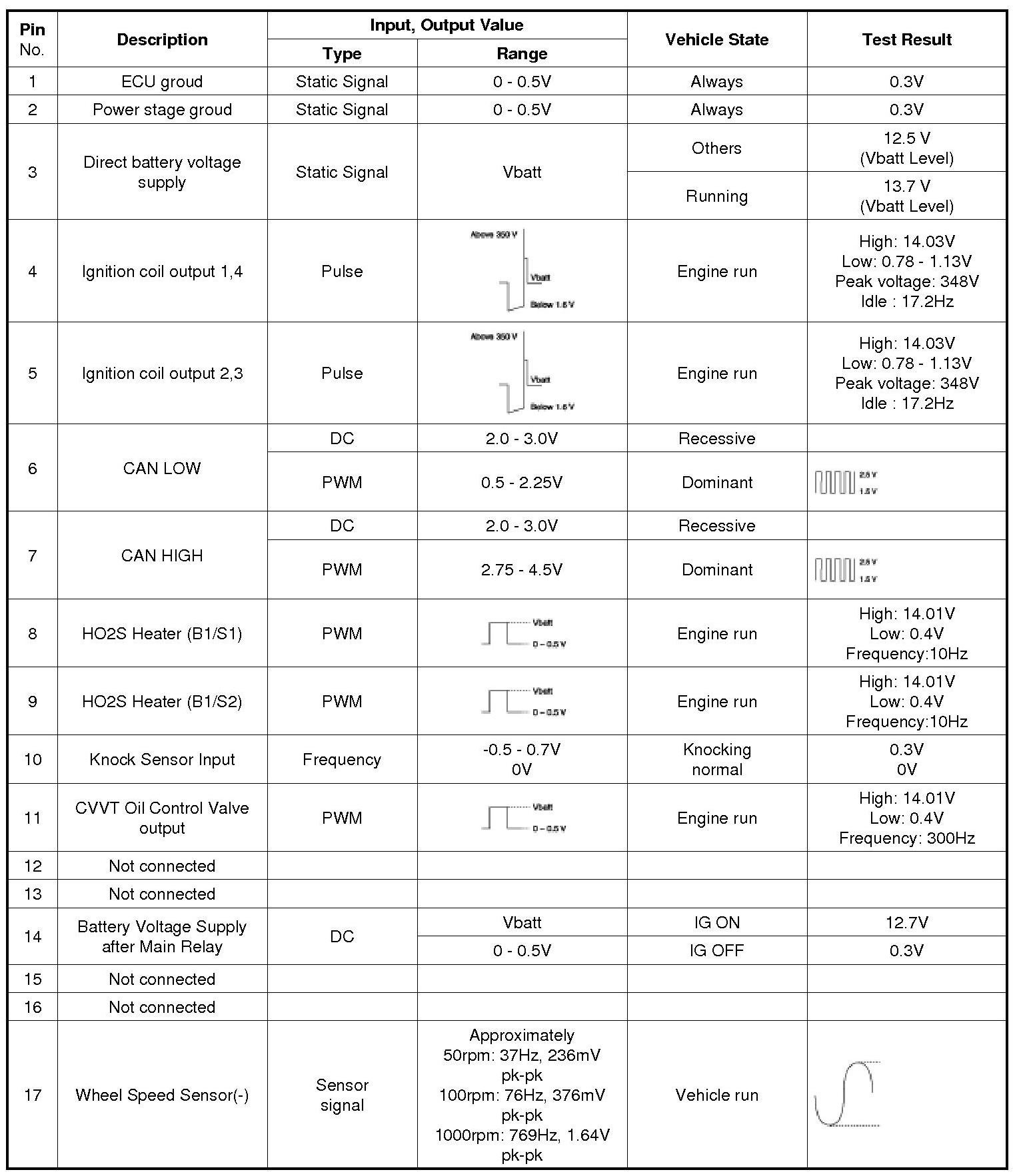 ECM TERMINAL INPUT/OUTPUT SIGNAL