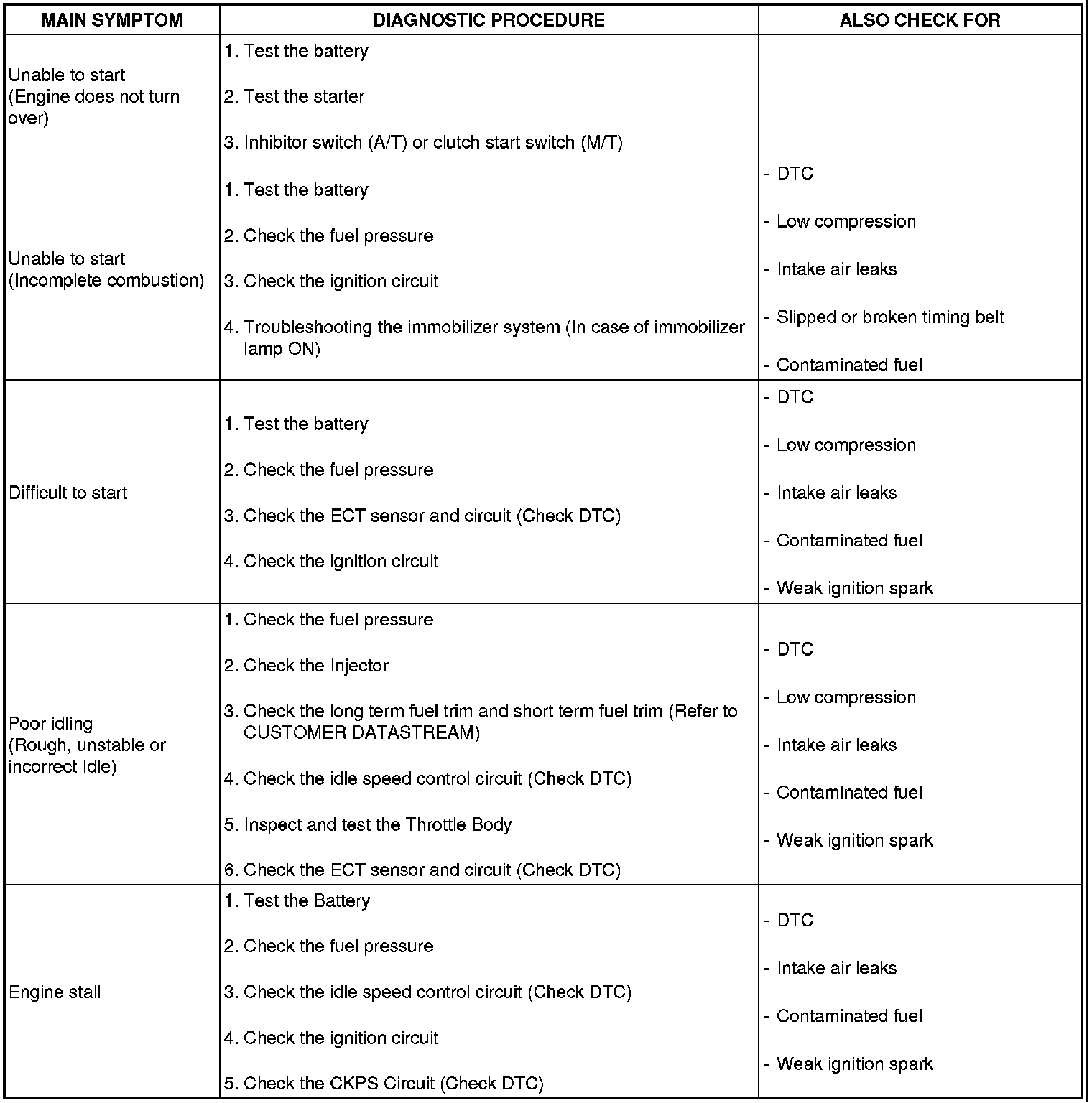 SYMPTOM TROUBLESHOOTING GUIDE CHART