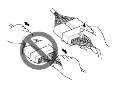 A. Never pull on the wiring harness when disconnecting connectors.