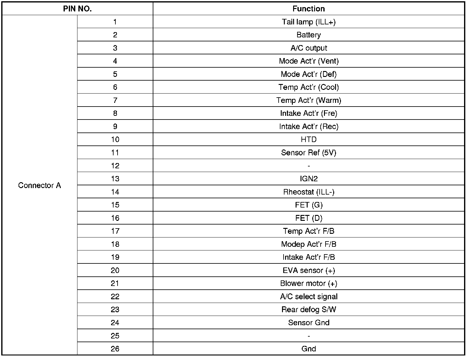 CONNECTOR PIN FUNCTION