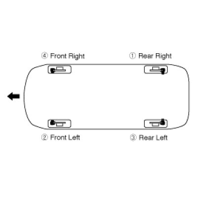 4. Repeat the procedure for each wheel in the sequence shown below until air bubbles no longer appear in the fluid.