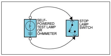 An ohmmeter can be used in place of a self-powered test lamp.