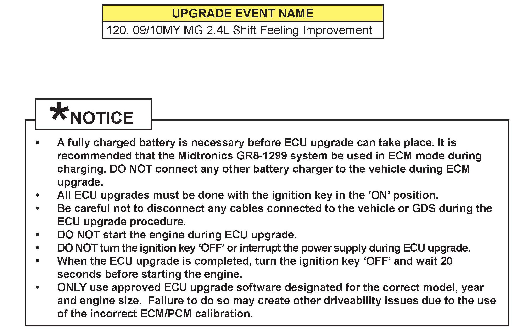 ^ Do NOT perform Manual Mode ECM upgrade unless Auto Mode fails