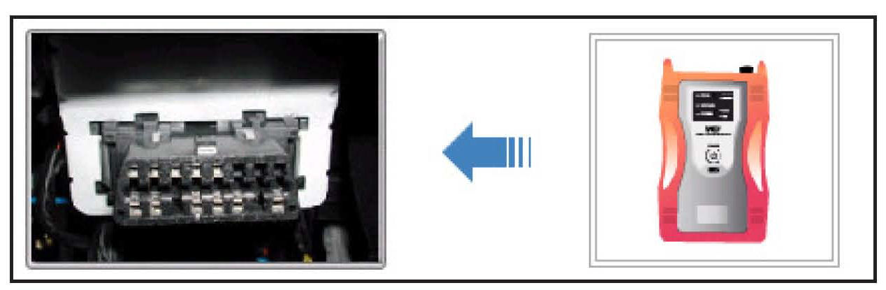 4. Connect the Main 16-pin DLC cable (GHDM - 241000) to the OBD-II connector located under the driver's side of the instrument panel.