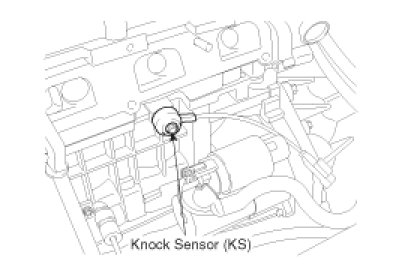 Knocking is a phenomenon characterized by undesirable engine detonation or pinging that can cause engine damage. Knock Sensor (KS) senses engine and cylinder block knocking. When knocking occurs, the vibration from the cylinder block is applied as pressure to the piezoelectric element. The sensor transfers the voltage signal higher than the specified value to the PCM and the PCM retards the ignition timing. If the knocking disappears after retarding the ignition timing, the PCM will advance the ignition timing. This sequential control can improve engine power, torque and fuel economy.