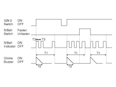 (1) SEAT BELT WARNING LAMP is ON for 1sec(DUTY 50%), CHIME BUZZER output on cycle 1.0s for 6sec.