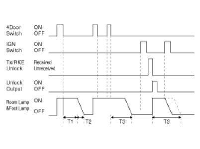 (5) All DOOR Unlock Rly are output for T1 when TUNLOCK signal is received.