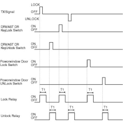 (4) All DOOR Lock Rly are output for T1 when TLOCK signal is received.