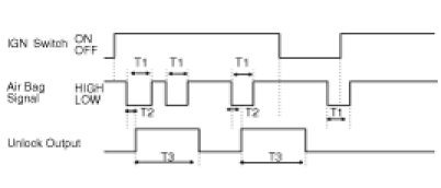 (3) UNLOCK signal is not output when "IGN SWITCH = OFF" is turned to ON after AIR BAG signal is input in advance.
