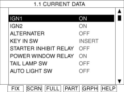 3. To consult the present input/out value of BCM, "02. INPUT/OUTPUT MONITORING". It provides information of BCM input/output conditions of power supply, turn signal/brake lamp, headlamp, door, locks, outside mirror, wiper, auto-light and transmitters etc.