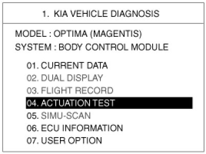 4. To perform compulsory operation on BCM input factors, select "04. ACTUATION TEST".