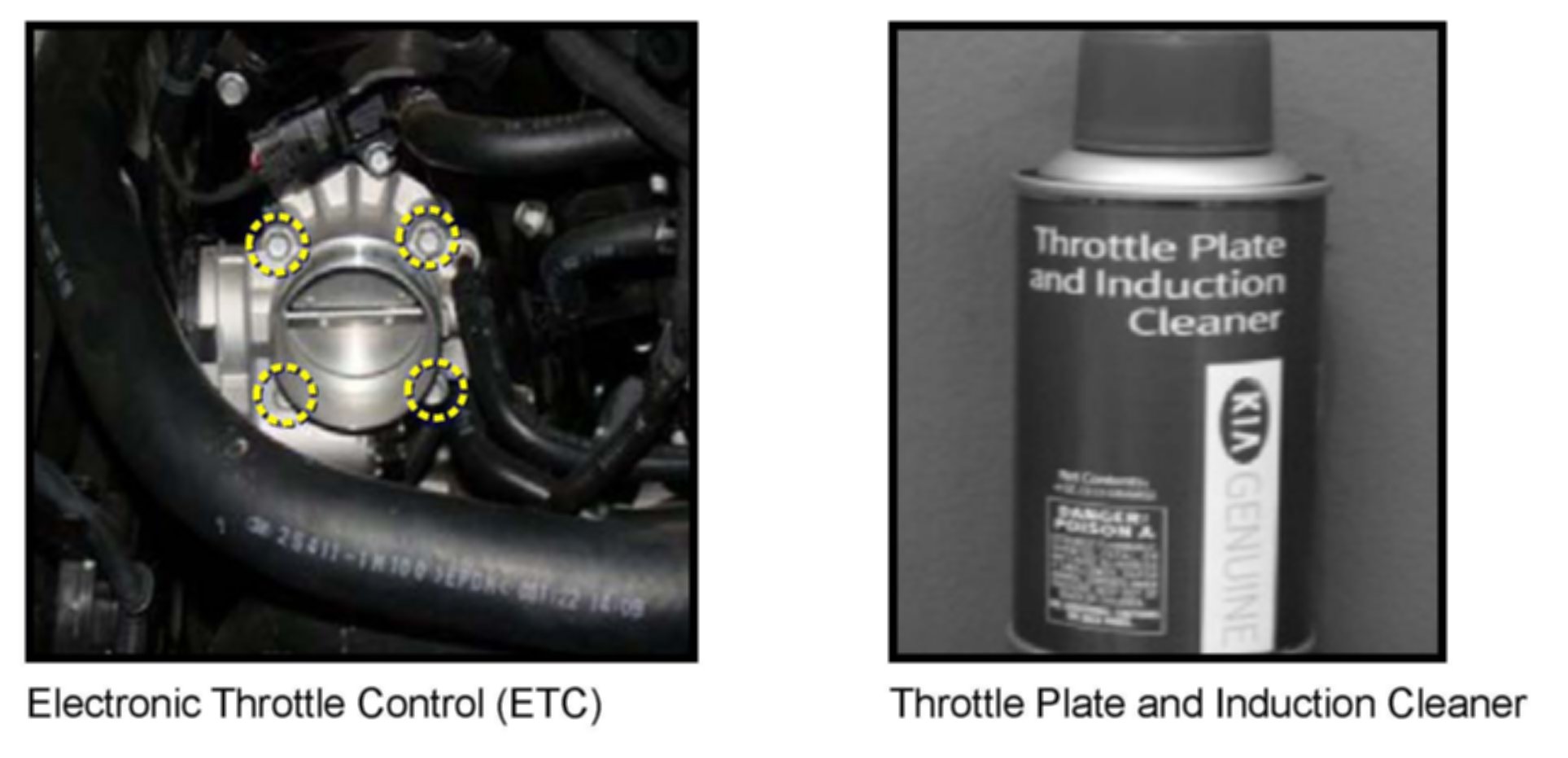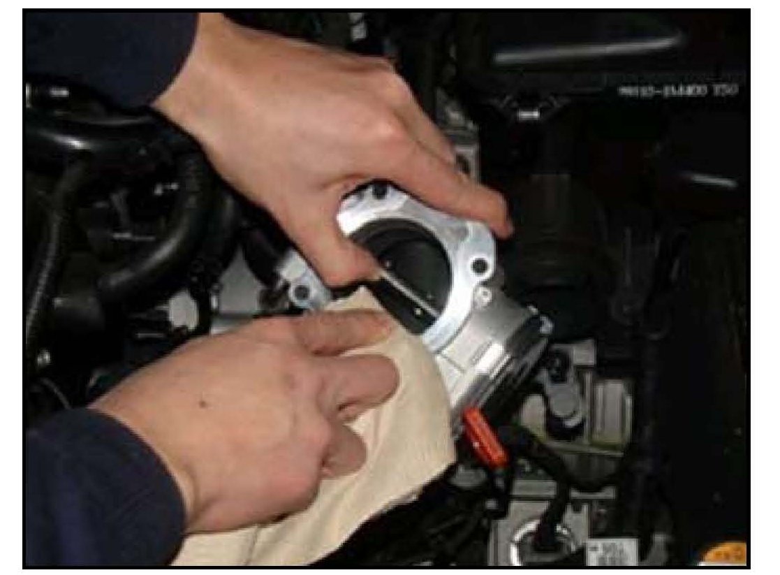 This bulletin provides information on how to clean carbon deposits and/or residues from fuel additives accumulated in Electronic Throttle Control (ETC) assemblies on Theta-2.0L/2.4L engine equipped vehicles. Dirty throttle bodies can cause a variety of concerns and may result in MIL illumination as described below. Although ECU may compensate for changes in air flow with fuel trim adaptive logic adjustments, DTC's may illuminate over time. Follow the instructions should the symptoms below arise.