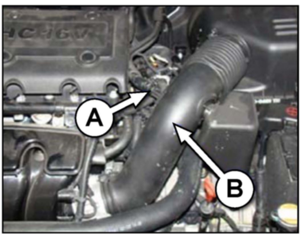 1. Remove the breather hose (A) and the air intake hose (B), to gain access to the ETC assembly.
