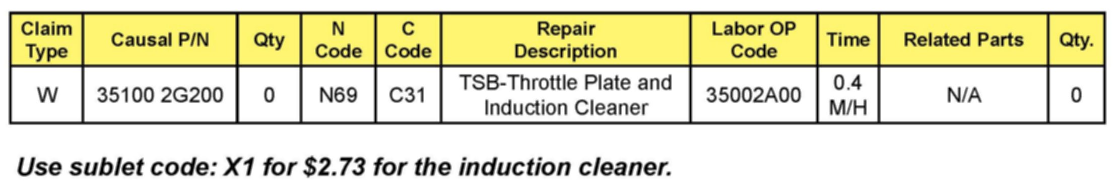^ Symptoms below can occur from carbon deposits and/or fuel additives accumulated over time in throttle body. ETC assembly should not be replaced for contamination. Any deposits need to be cleaned off following the instruction in this TSB.