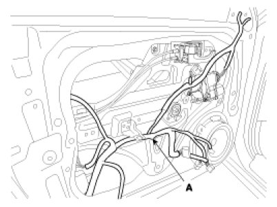 4. Loosen the door module mounting bolts, then remove the door module (A).