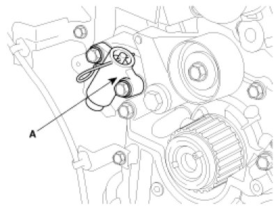 (5) Install the auto tensioner(A) to the front case with the set-pin inserted.