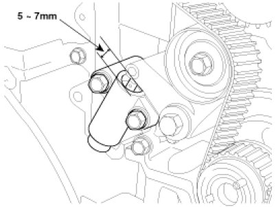 Align the holes of the bolts by pushing the left timing belt lower cover to left a little bit.