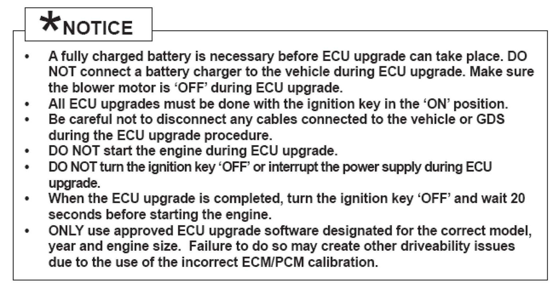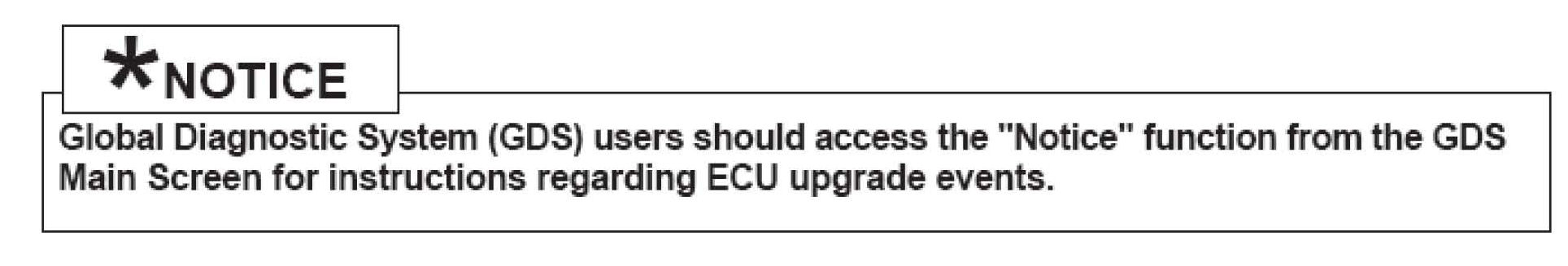 7. When the GDS tool reports that the ECM upgrade has been successfully completed, click OK, turn OFF the ignition key, and wait at least 10 seconds before attempting to start the engine.