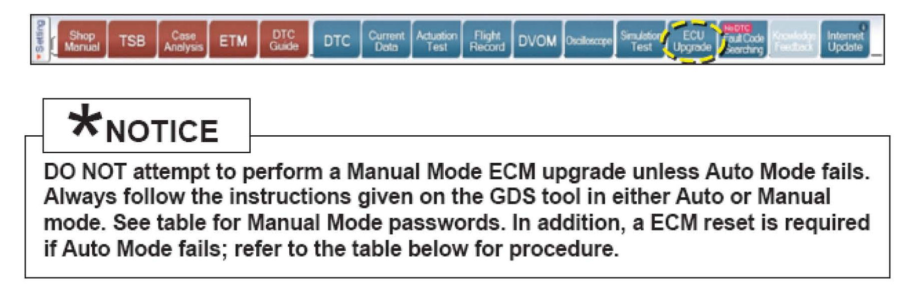 * Do NOT perform Manual Mode ECU upgrade unless Auto Mode fails.