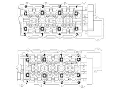 Tighten the cylinder head bolts with the plain washers in several steps as following order.