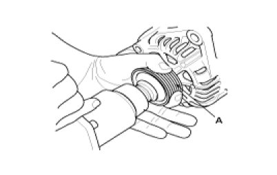 5. Remove the nut, and the pulley(A).