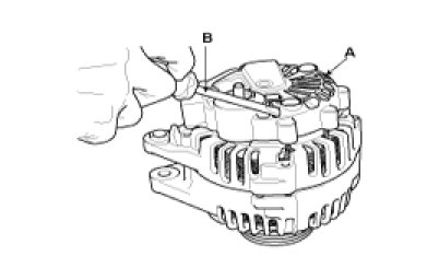 1. Remove the generator cover(A) using a screw driver(B).