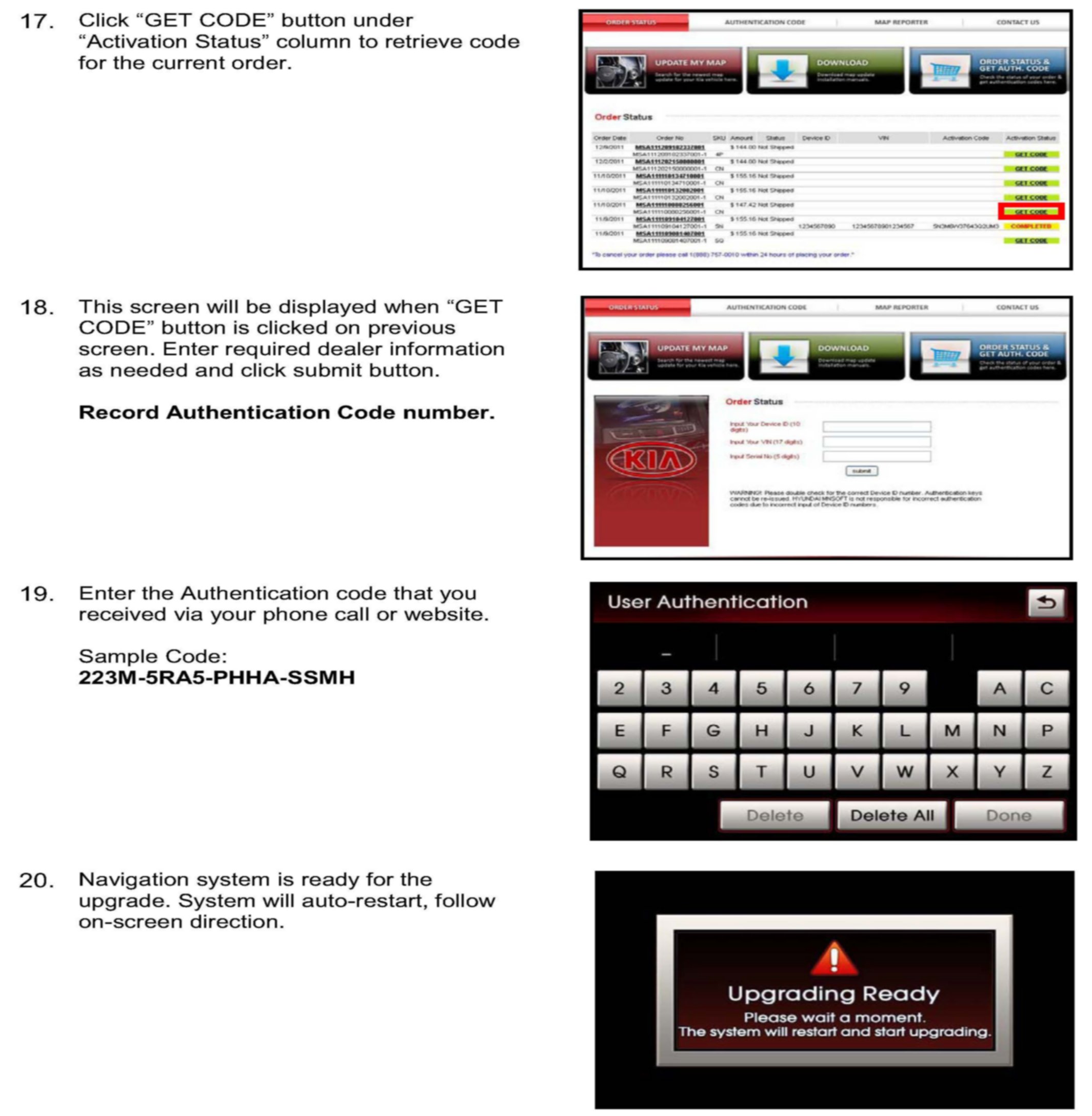 Mapping data is NOT free. There are licensing fees that Kia and Mobis have to pay for the mapping data that are not inconsequential. To prevent unauthorized usage, the map update process REQUIRES an authentication code that can ONLY be distributed by MnSoft, the map compiler for Kia products. Without an authentication code from MnSoft, the map will NOT download. Kia (KMA) can NOT provide map authentication codes, and map authentication codes are unique to head unit and VIN - a map authentication code cannot be used on any system other than the specific VIN and navigation system device ID that is supplied to MnSoft for them to supply an authentication code.