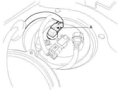 2. Disconnect the fuel feed tube quick-connector (A), the fuel tank pressure sensor connector (B), and the canister close valve connector (C).