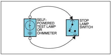 An ohmmeter can be used in place of self-powered test lamp.