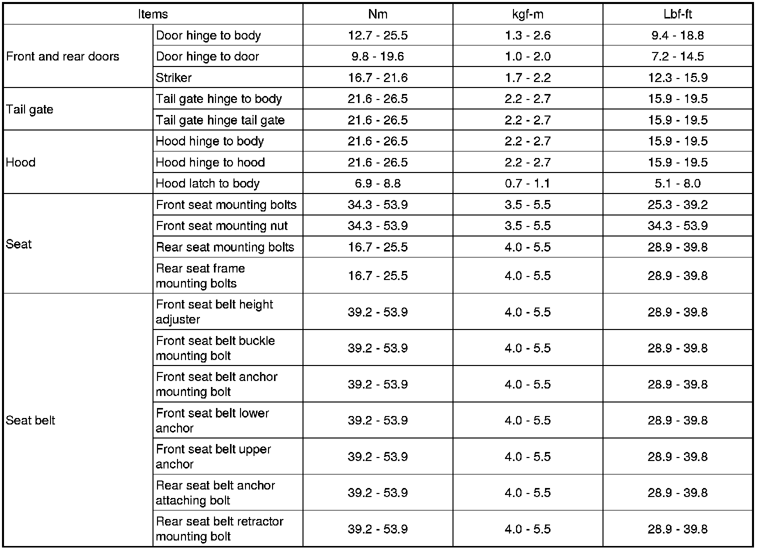 TIGHTENING TORQUE