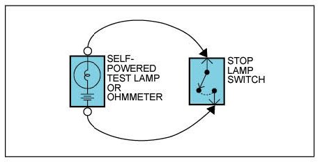 Use a self-powered test lamp or an ohmmeter to check for continuity. The ohmmeter shows how much resistance there is between two points along a circuit. Low resistance means good continuity.