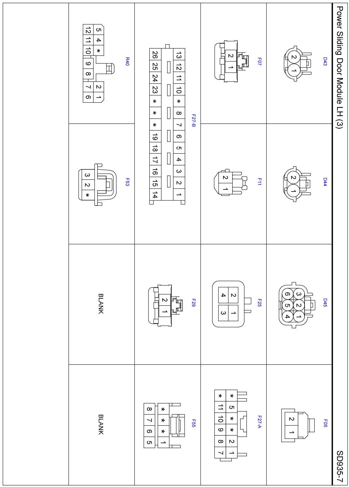 Power Sliding Door Module LH Connector Pin Outs: