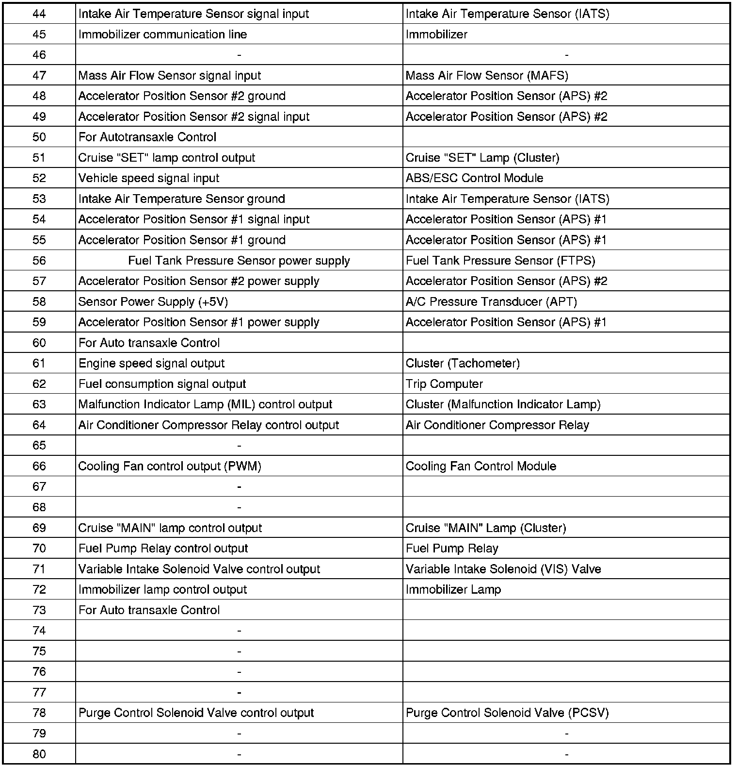 PCM TERMINAL INPUT/OUTPUT SIGNAL