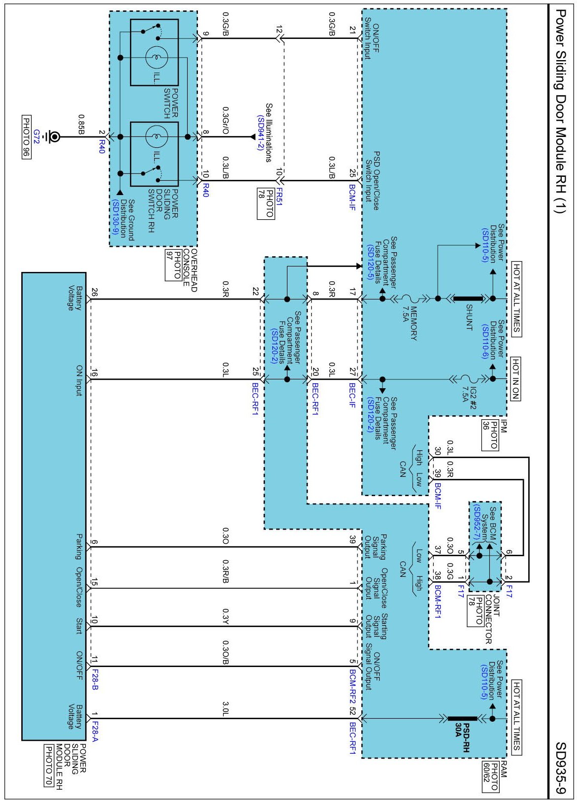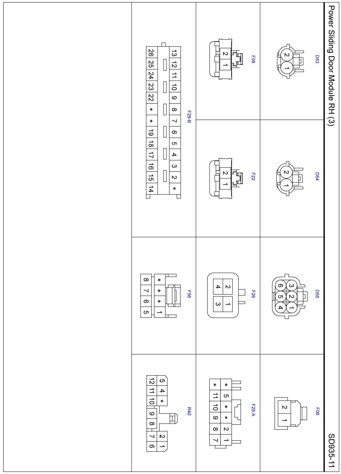 Power Sliding Door Module RH Connector Pin Outs: