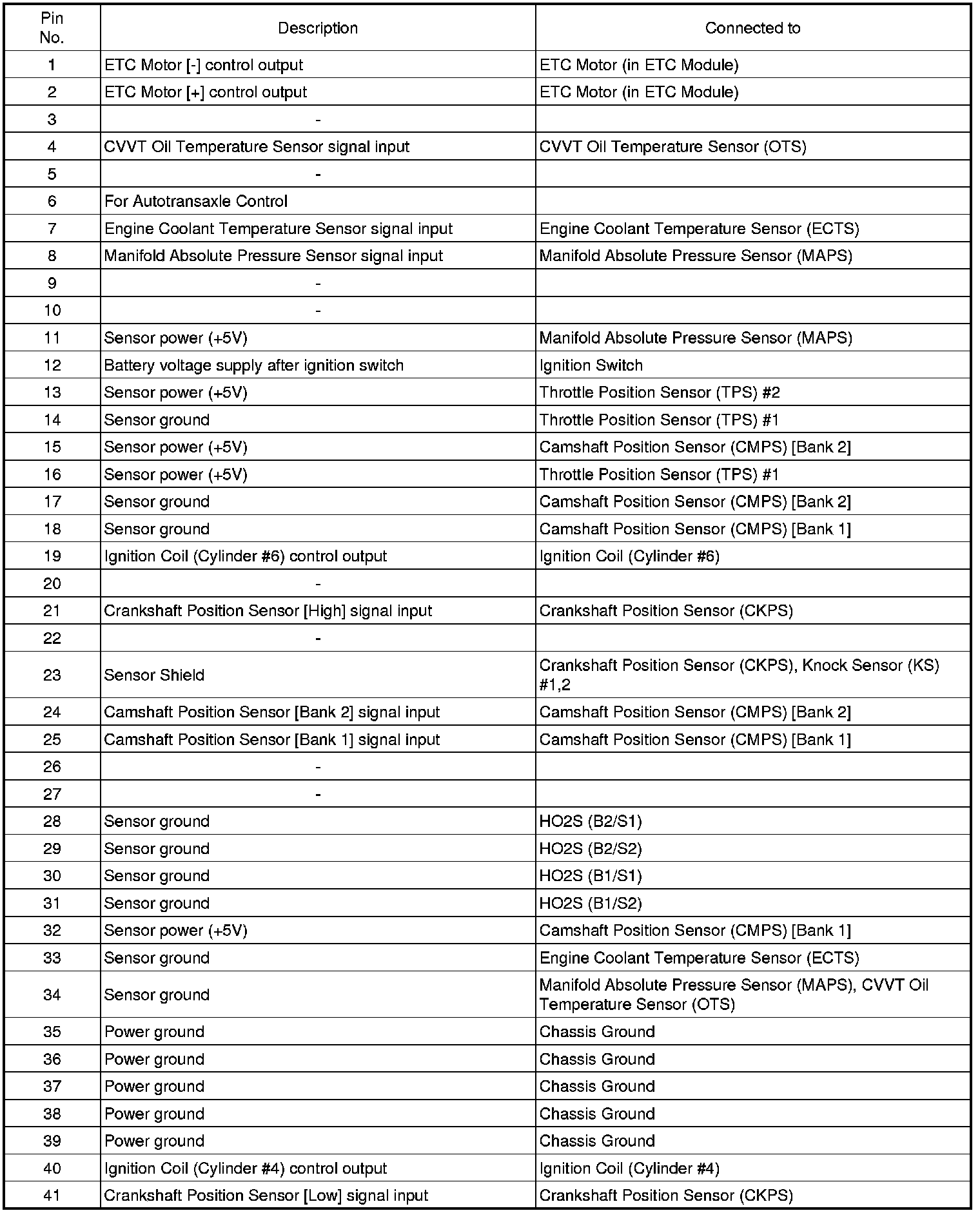 ECM TERMINAL INPUT/OUTPUT SIGNAL