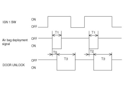 (1) With ignition turned ON, if the air bag deploys, a crash signal is received and simultaneously sends an unlock output to all doors.