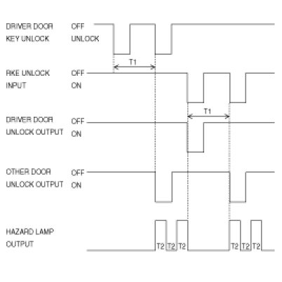 (4) With the RKE UNLOCK, the hazard lamp goes ON twice. If the RKE UNLOCK is input again (a different door UNLOCK) the hazard lamp output cannot be renewed.