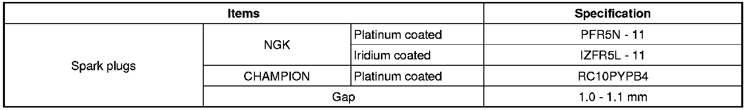 Spark Plug: Specifications