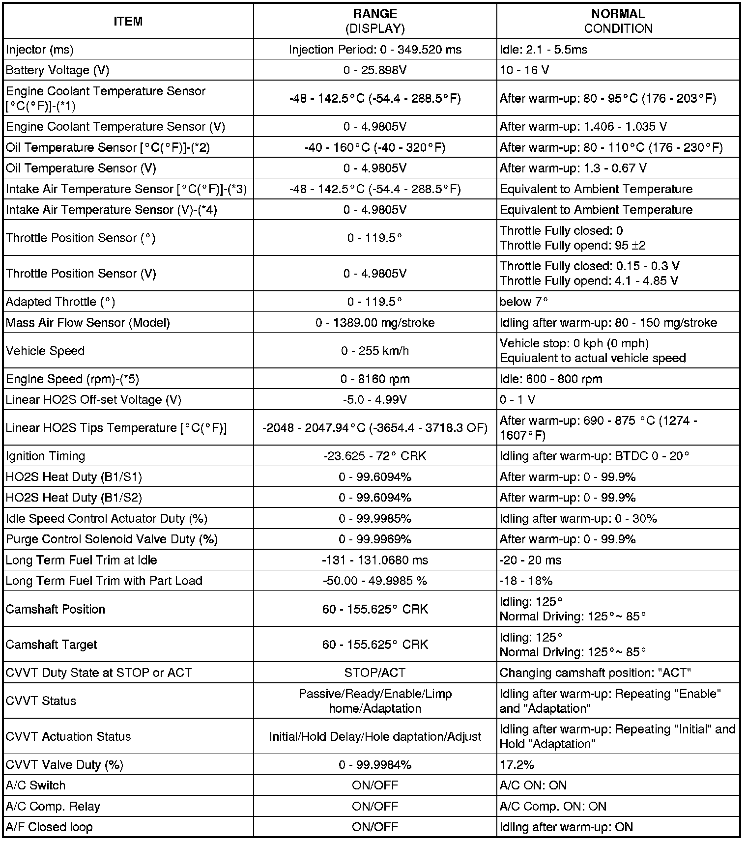 - (*3) If the value is lower than -46°C (114.8°F) or higher than 142°C (287.6°F), sensor circuit is open or shorted.