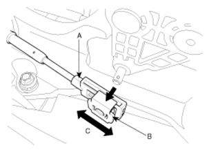 - Adjust the slide clip (B) to fit it into the select lever pin (A) and install the snap pin (C).NOTE: Insert the slide clip in the direction as shown in Fig 3.