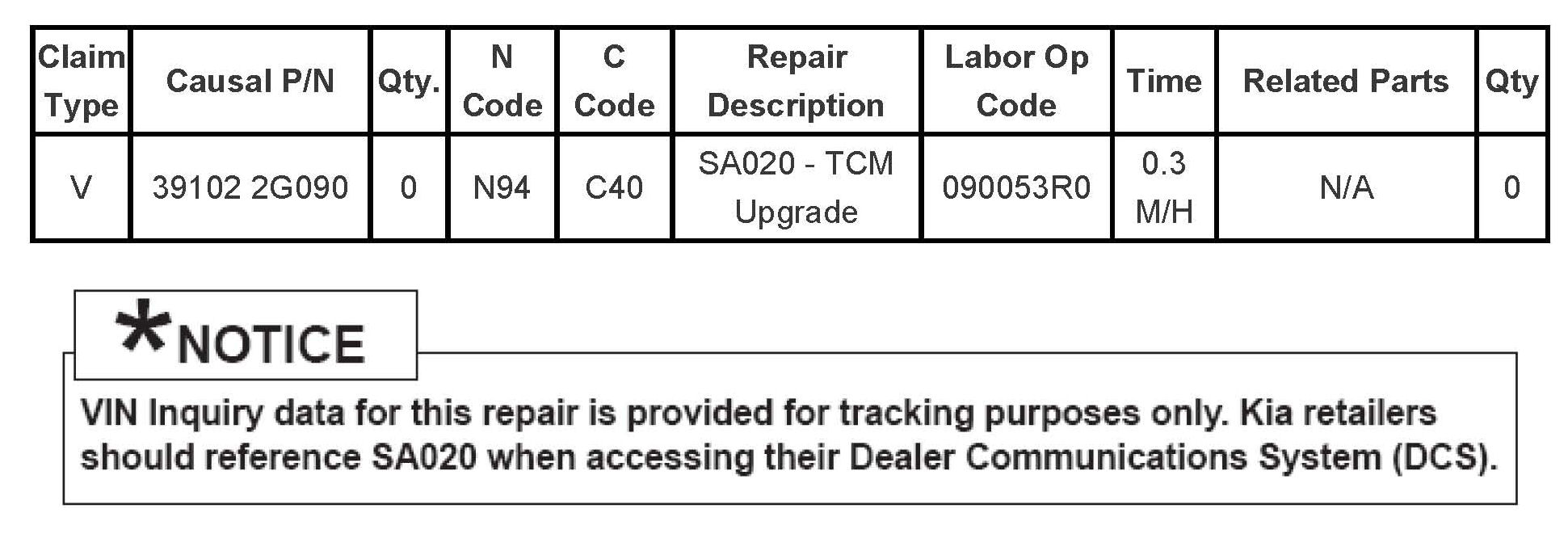 Campaign SA020 - PCM Update For A/T Shift Hesitation
